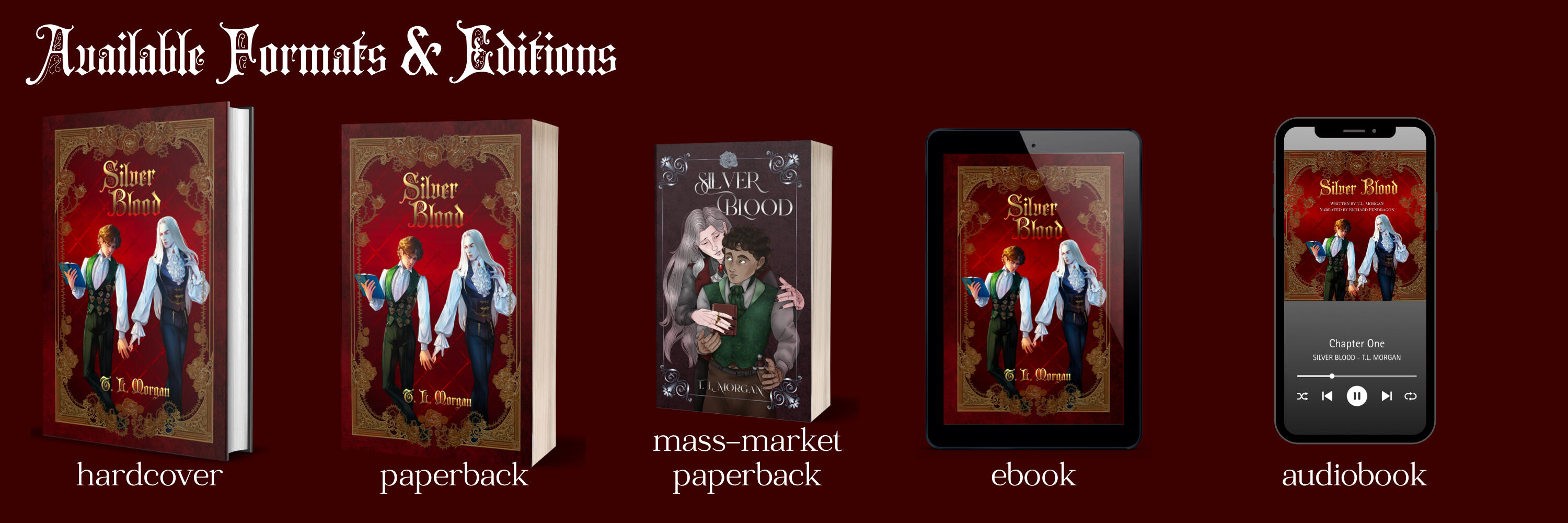 Silver Blood is now available in audio format as of October 2025. Narrated by Richard Pendragon, this edition of the book is an outstanding performance that will wholly immerse you in Cyrus and Lucien's story.